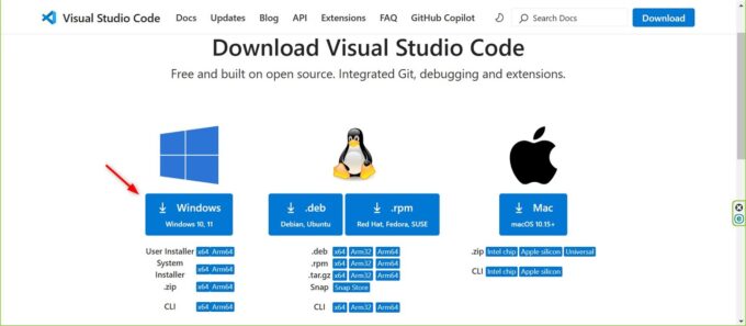 今回は多くの言語に対応していて人気のある「Visual Studio Code」を使ってみます。まずは公式サイトからダウンロードします。